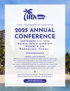 If you have delivery trucks, utility trucks, or tour vehicles, HTA can serve you. If your customers are trucks and/or tour vehicles you can be an HTA Allied Member and gain access to the commercial ground transportation industry. The association serves as a central source of information by conducting research and education programs for its members. It also represents the industry’s interests before county, state and federal agencies as well as county councils, the state legislature and Congress.